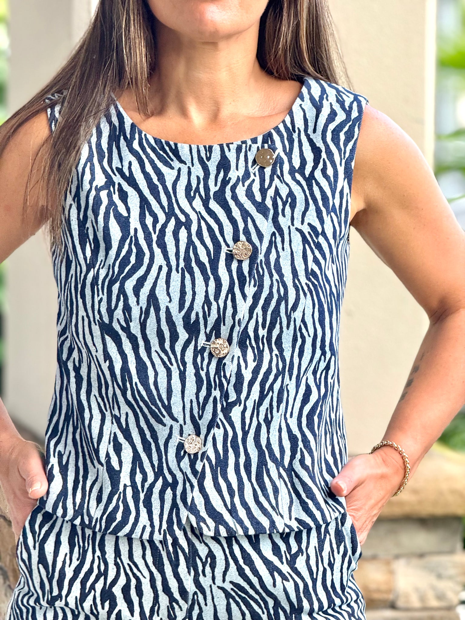 Denim Printed Vest And Stretching Pants Set